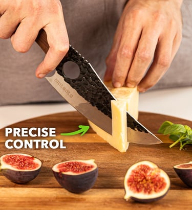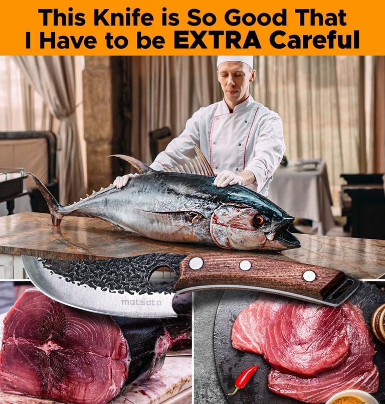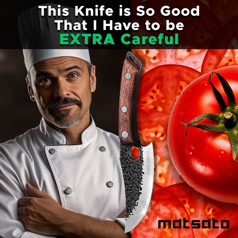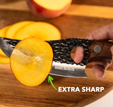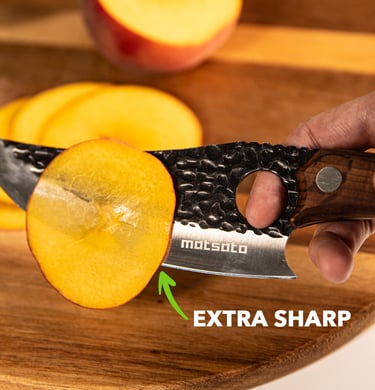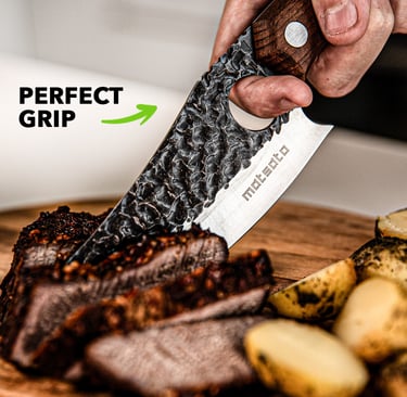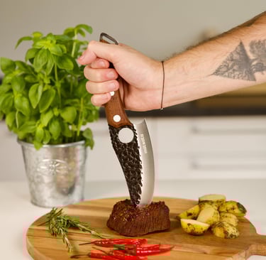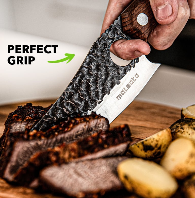 🔨 Precisely Crafted Details From the rugged hammered finish (which stops food from sticking) to the balanced weight distribution, every inch of this knife is engineered for performance.